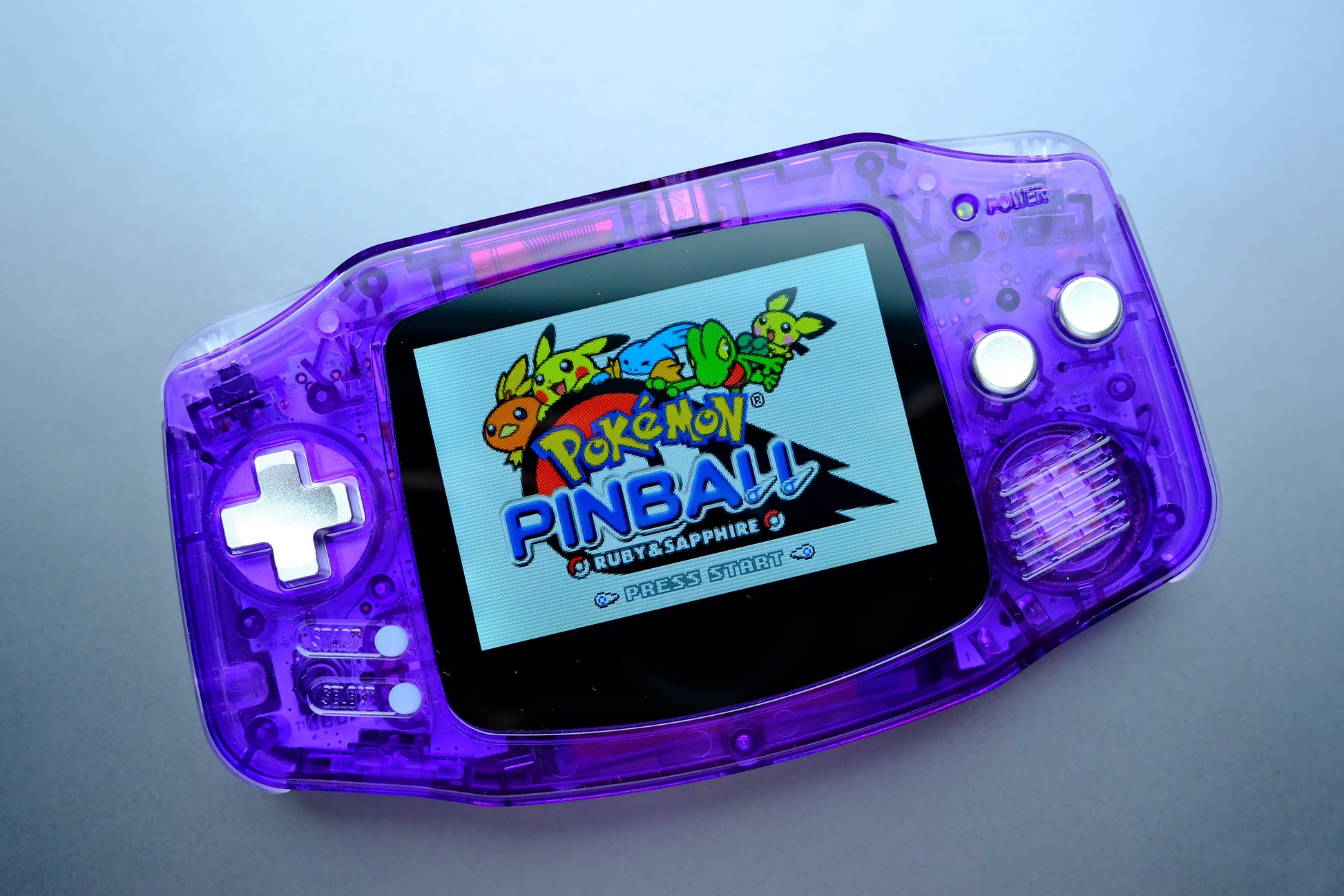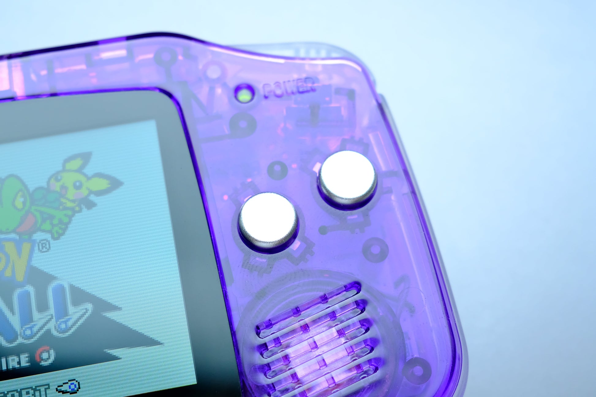 Clear Purple GBA with IPS V5 Screen and Silver Metal Buttons