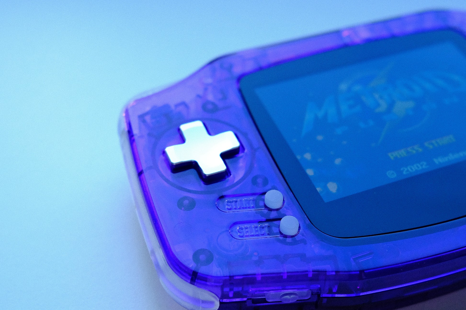 Clear Purple GBA with IPS V5 Screen and Silver Metal Buttons